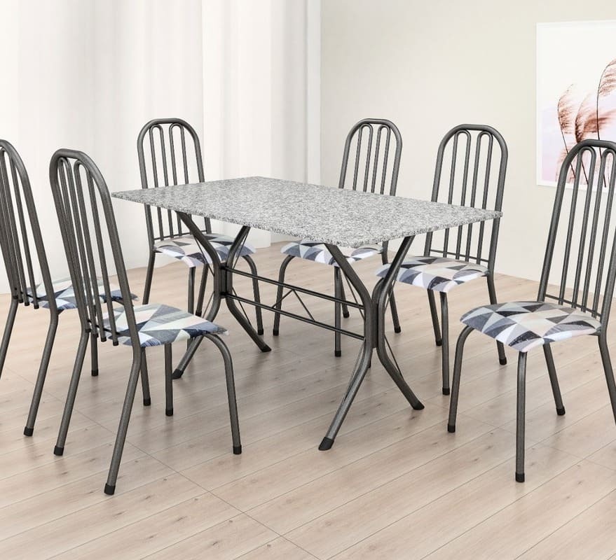 O Conjunto de Mesa Natal com 6 Cadeiras é a escolha perfeita para transformar sua sala de jantar em um ambiente elegante e acolhedor. Com estrutura tubular em aço para estabilidade, o tampo em pedra ardósia adiciona sofisticação e resistência a riscos e manchas. As cadeiras combinam harmoniosamente com a mesa, garantindo conforto com estofamento. Ideal para diversos espaços, é perfeito para receber convidados ou desfrutar de refeições em família, criando um ambiente acolhedor e elegante.