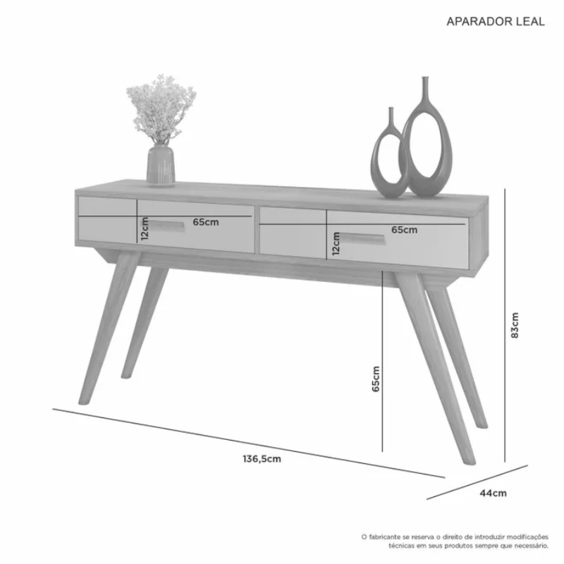 Aparador Leal 2 Gavetas e Pés em Madeira Maciça