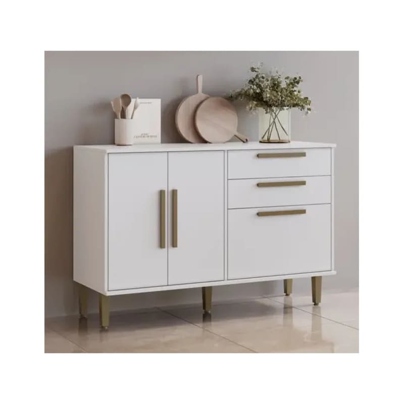 Balcão 3 Portas 2 Gavetas Lorena Nature c/ Off White - Marrom