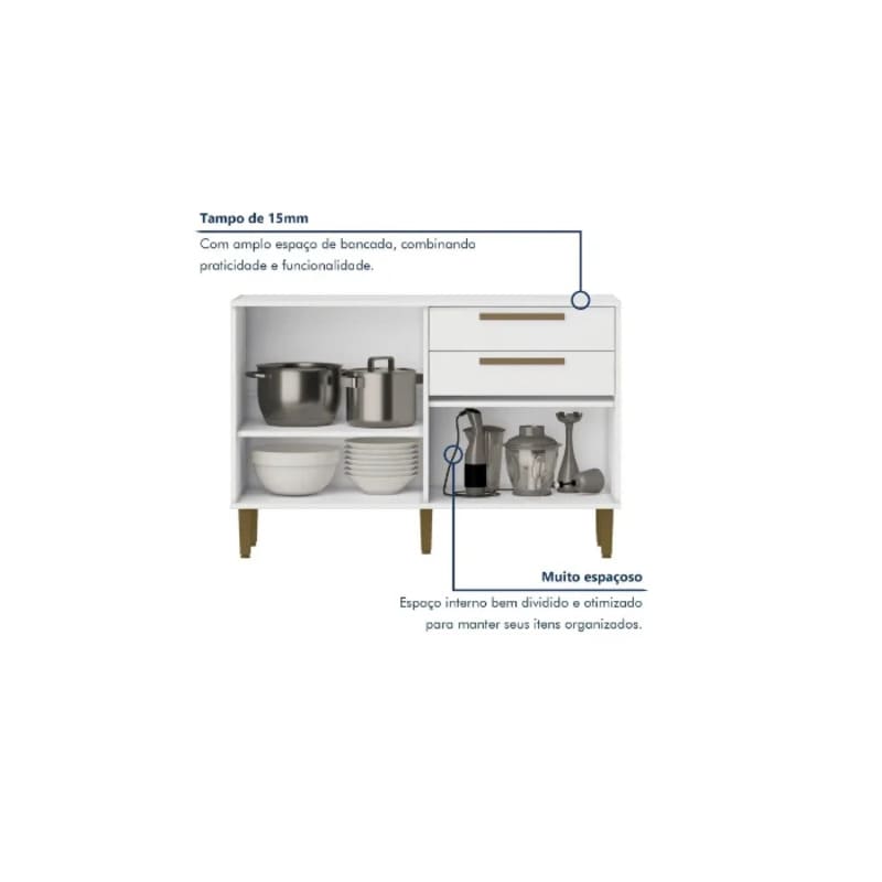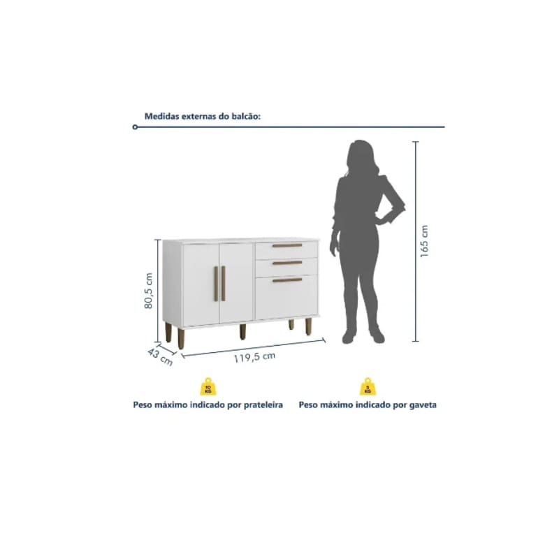 Itens Inclusos: 1 Balcão + 1 Kit Ferragens + Manual de Instrução